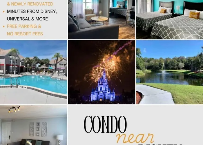 The 1-bedroom Condo Near Disney-Universal-Epic-Sea World Orlando villa offers proximity to nearby tourist spots, such as the Disney's Typhoon Lagoon Water Park, situated approximately 10 minutes' drive away.
